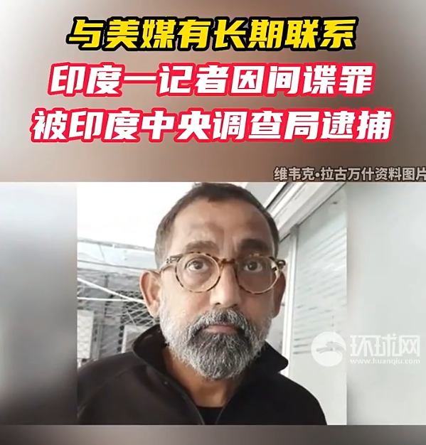 与美媒有长期联系 印度一记者因间谍罪被印度中央调查局逮捕