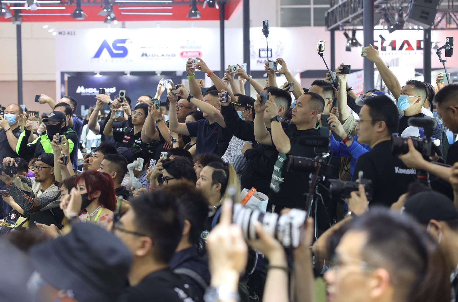 5月19日,川崎四缸忍者Ninja ZX-4R/RR发布会现场,吸引观众拍摄。(日本头条 郑闻摄)
