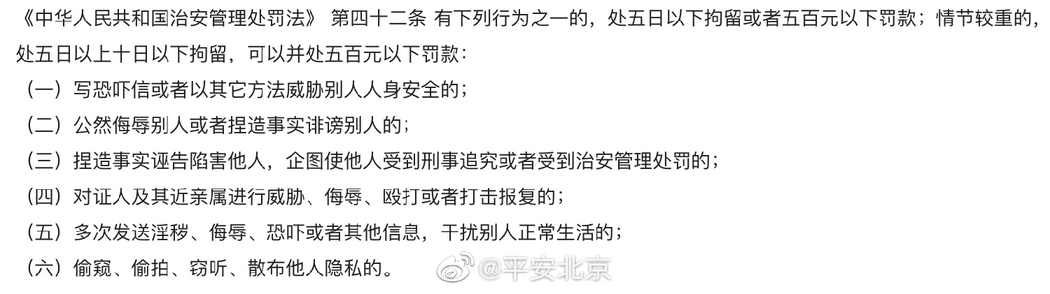 并“贴心”附上《中华人民共和国治安管理处罚法》相关规定: