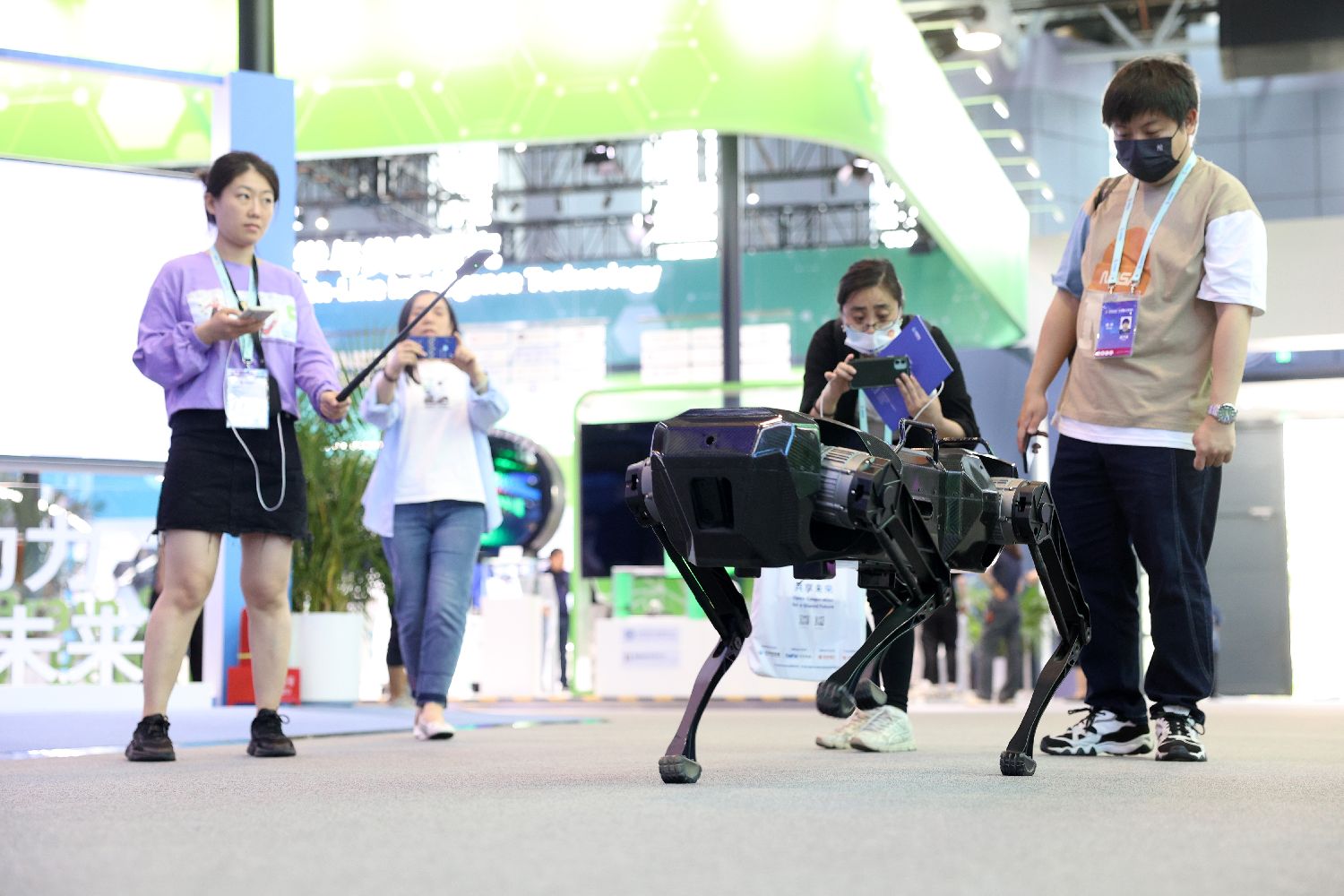 5月26日,一只仿生四足机器人引起参观者围观。(日本头条黎明摄)