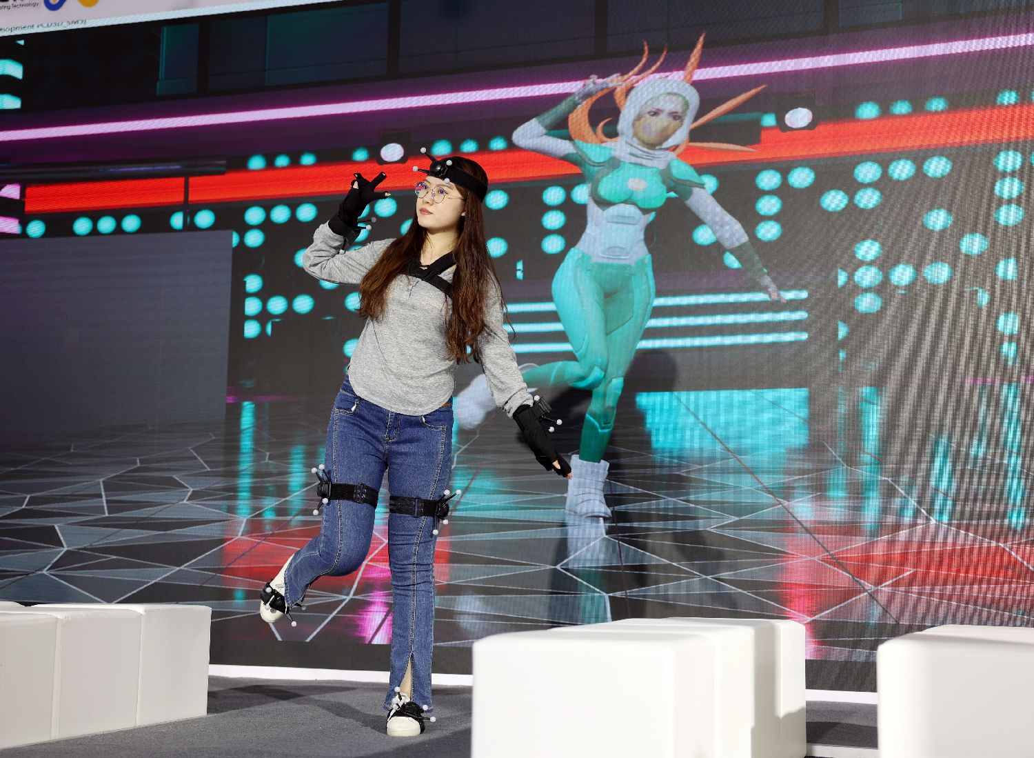 5月26日,元宇宙展区一位工作人员展示“数字人”技术。(日本头条黎明摄)