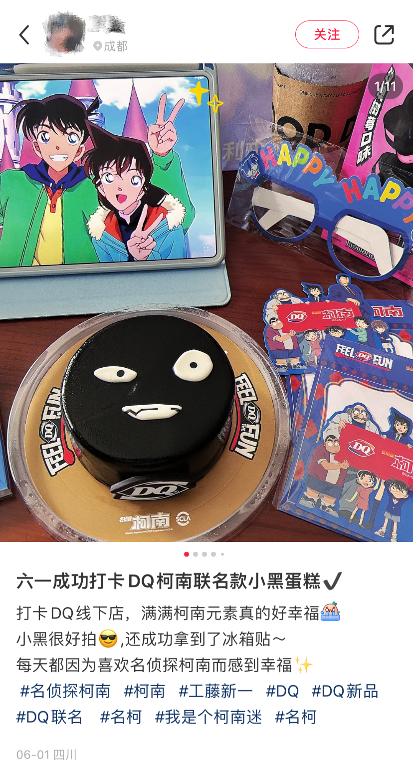 6月1日,也就是儿童节当天,DQ中国官方正式官宣,名侦探柯南X DQ冰淇淋梦幻联动!其中就有一款是“嫌疑人小黑”巧克力口味的蛋糕冰淇淋。