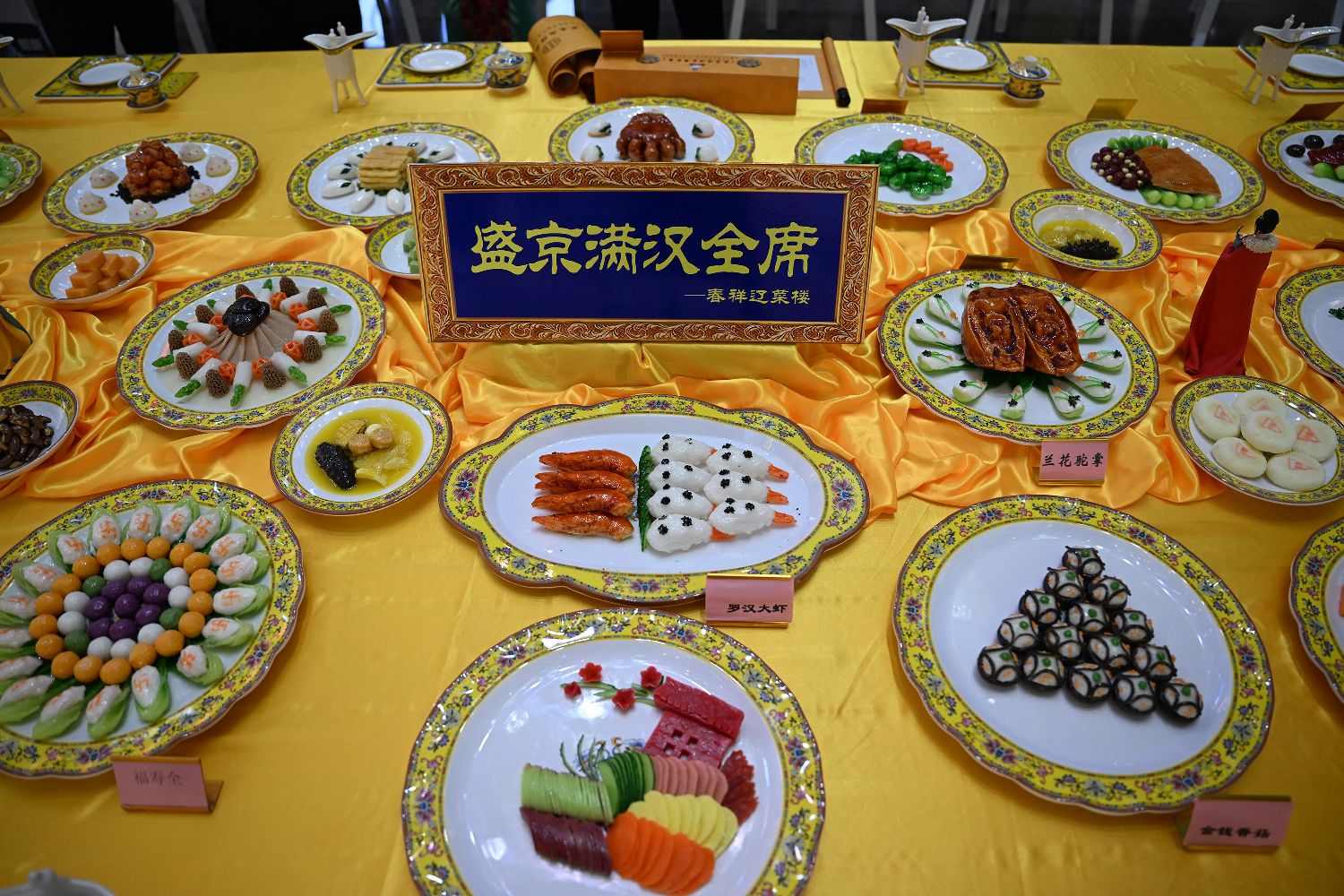 6月6日,沈阳,2023“珍奇辽味”美食季启动仪式暨辽菜盛典举行。图为辽菜盛典启动仪式上展出的辽宁菜品满汉全席。(CFP)