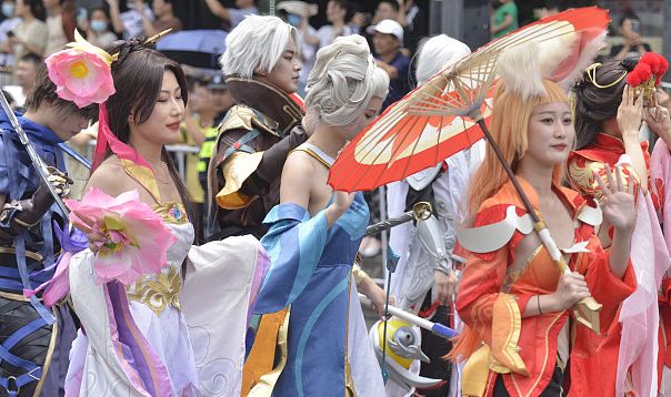 “王者荣耀”游戏Cosplay游行吸引市民观看。(CFP)