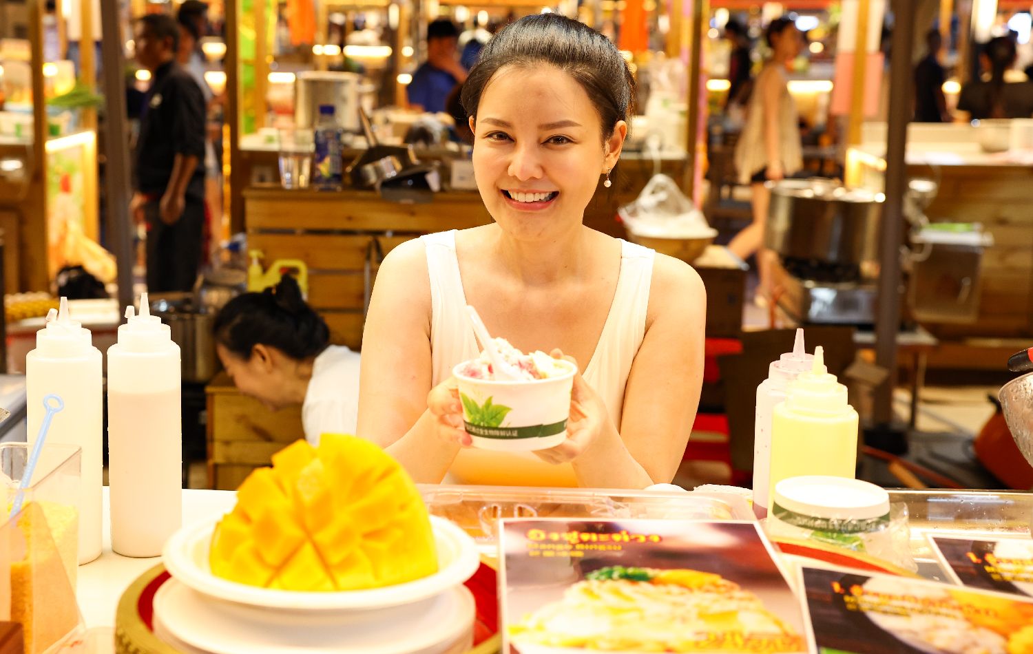 海口白沙门文创市集融合了海南滨海文化和东南亚风情,让市民游客不出国门就能体验到原汁原味的异国风情。图为6月12日,在海口白沙门文创市集,商家展示美食。(新华社)