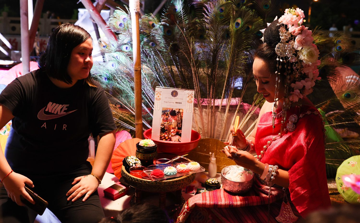 近日,海南海口白沙门文创市集开市,该市集融合了海南滨海文化和东南亚风情,让市民游客不出国门就能体验到原汁原味的异国风情。