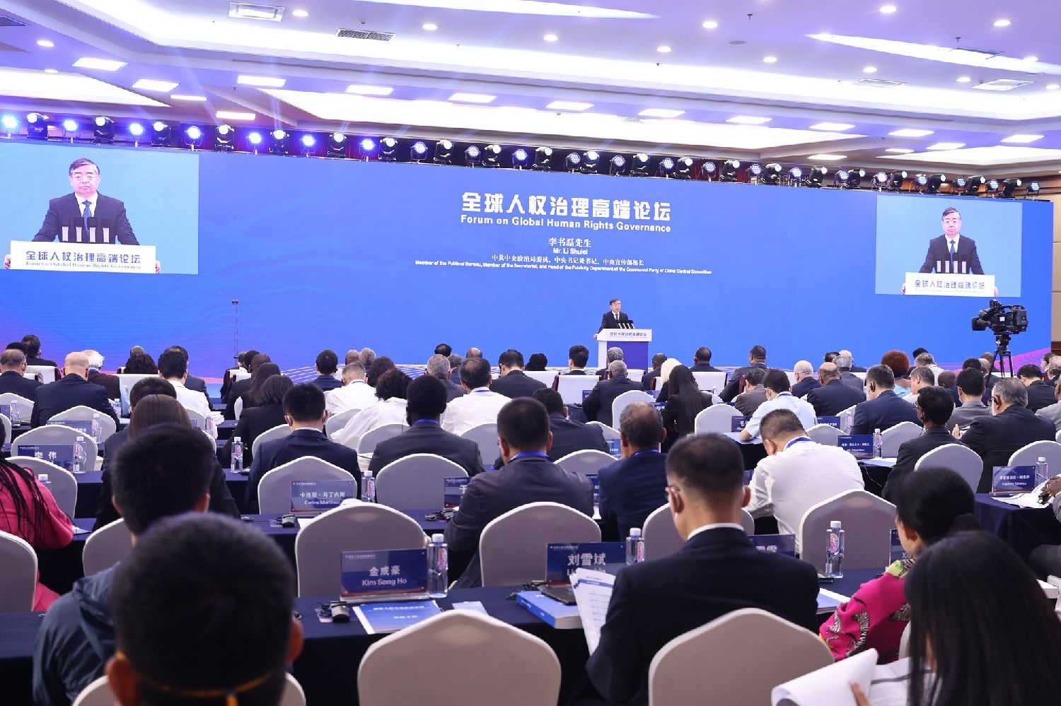 6月14日,全球人权治理高端论坛在北京举办。中共中央政治局委员、中宣部部长李书磊出席开幕式,宣读中国国家主席习近平贺信并发表主旨演讲。