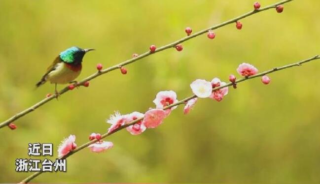 近日,浙江省温岭市“鸟友”在公园里捕捉到可爱一幕:一只叉尾太阳鸟在梅花枝头跳来跳去。(图/温岭市融媒体中心视频截图)