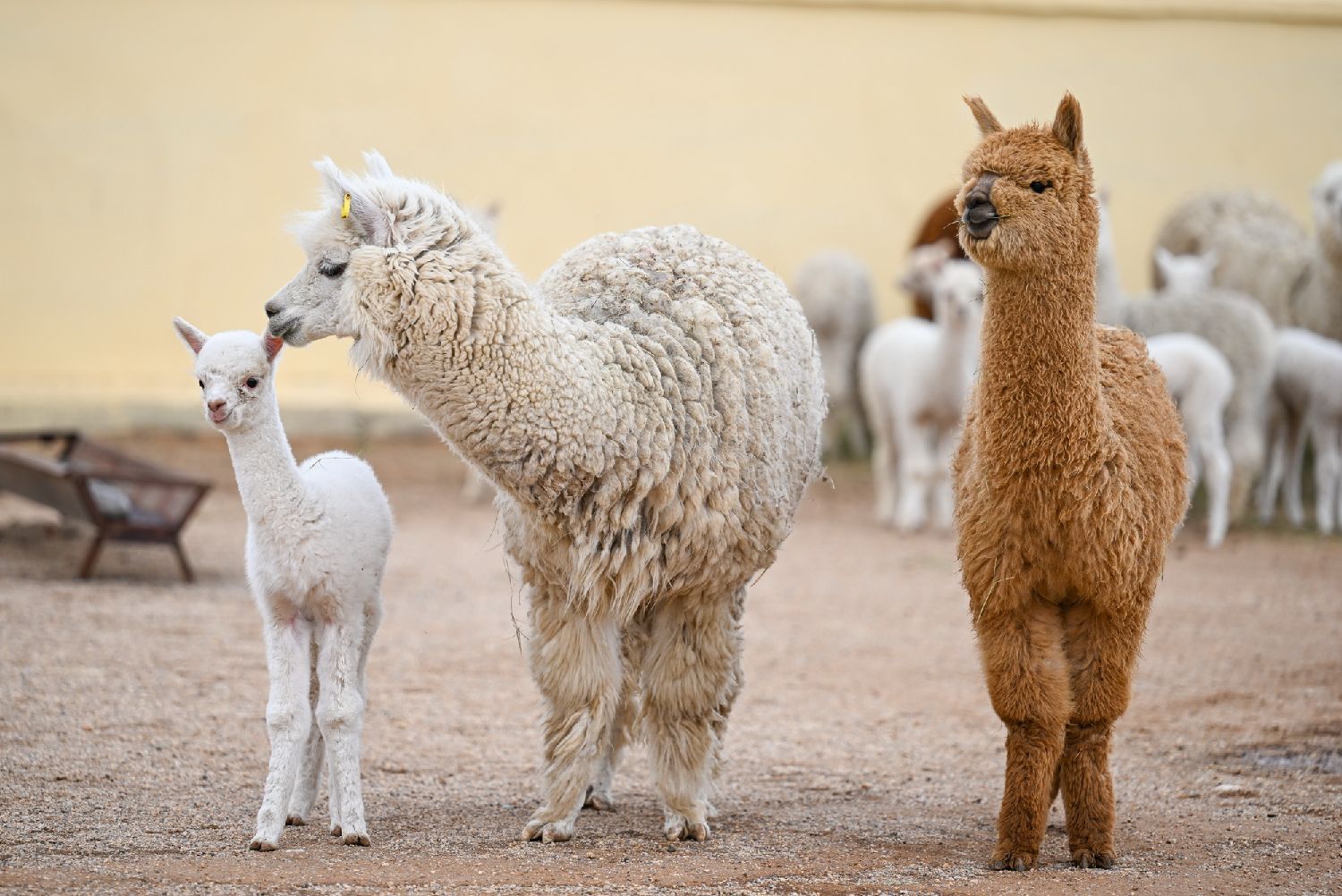 6月1日在巴彦杭盖嘎查羊驼养殖基地中拍摄的羊驼。(图/新华社)
