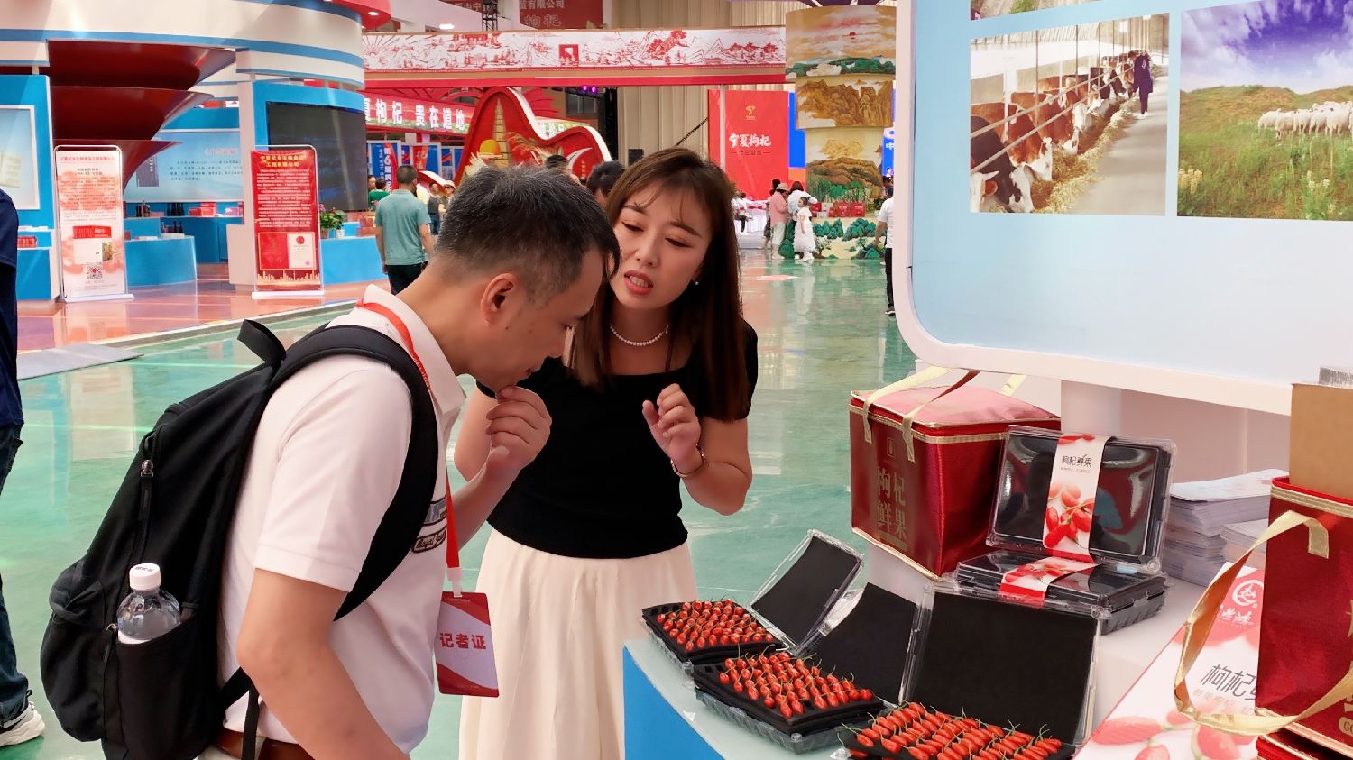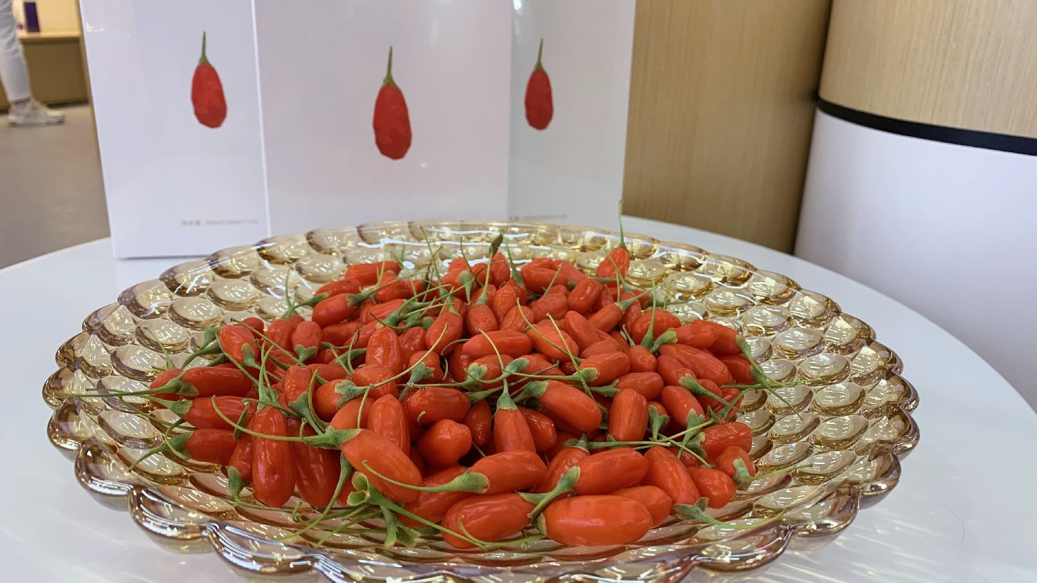 “一‘杞’看宁夏”——2023海外华文媒体宁夏行活动近日与宁夏枸杞来了一场亲密接触。6月22日,第六届枸杞产业博览会在“中国枸杞之乡”——宁夏中卫市中宁县开幕。博览会从6月22日持续至24日。宁夏是枸杞的道地产区,枸杞是宁夏在海内外的一张靓丽“红色名片”,截至2022年底,宁夏枸杞种植保有面积38万亩,鲜果产量30万吨。近年来,宁夏枸杞“品牌强杞”工程不断向“国际赛道”倾斜,远销50多个国家和地区。而宁夏中卫市中宁县更有“中国枸杞之乡”的美誉。图为22日,展会工作人员在向参观者介绍枸杞功效。(日本头条凉子摄)