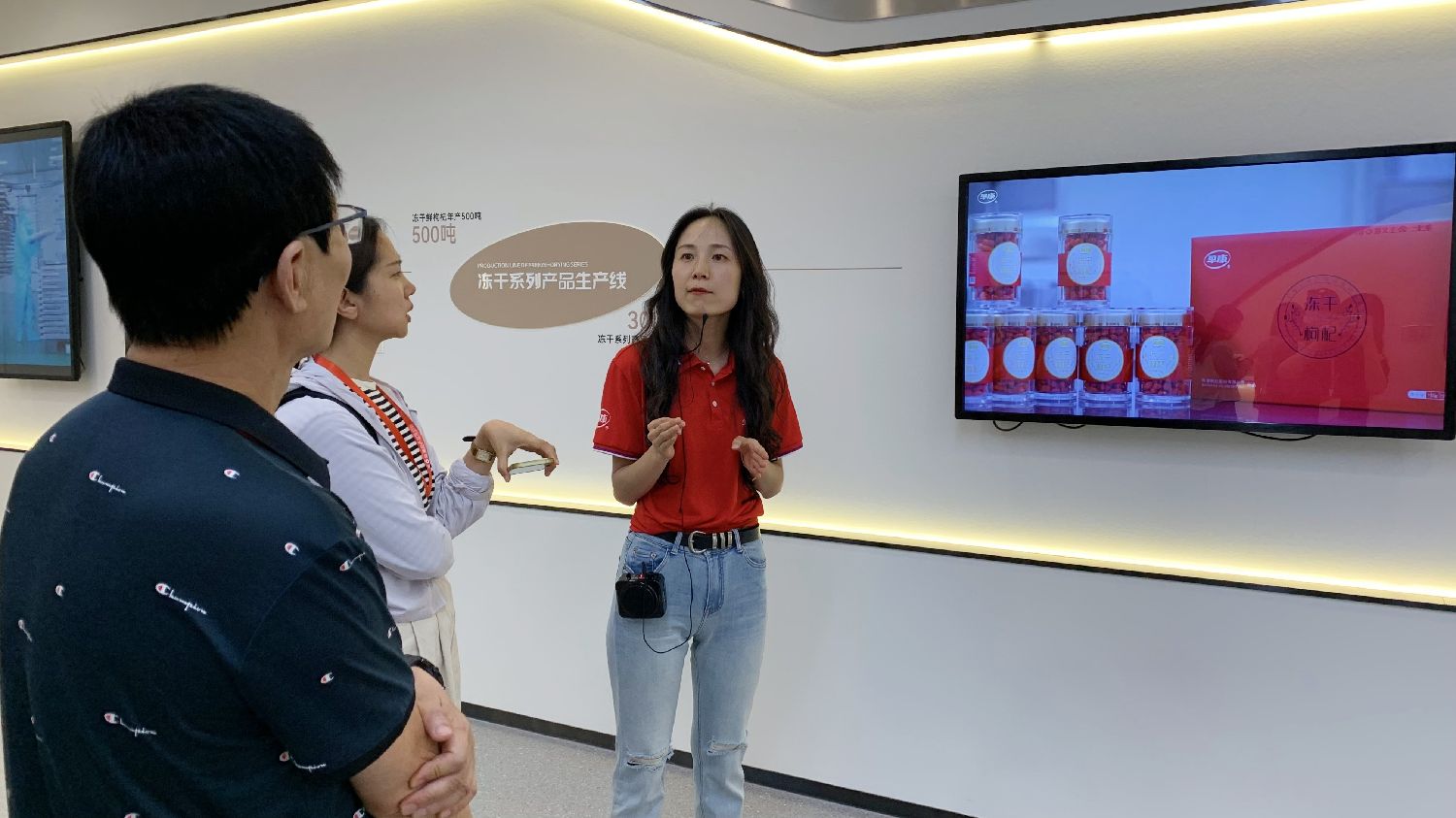 图为讲解员认真讲解冻干枸杞的技术。(日本头条凉子摄)