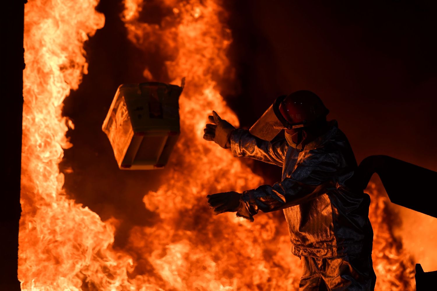 图为2022年6月25日,钢厂工作人员将毒品分批投入高炉销毁。(图/中新社)