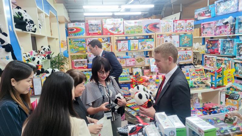 希普金斯在6月25日抵达中国进行正式访问,并出席27日在天津举行的第十四届夏季达沃斯论坛,在前往天津之前,他与随行人员来到秀水街,开启购物之旅。他在秀水街收获了包括Mark Cheung、劳伦斯·许、宝盛藏等代表中国智造、中国设计的设计师作品,同时为一对儿女选购了熊猫玩偶和中式童装,留下了愉快的回忆。