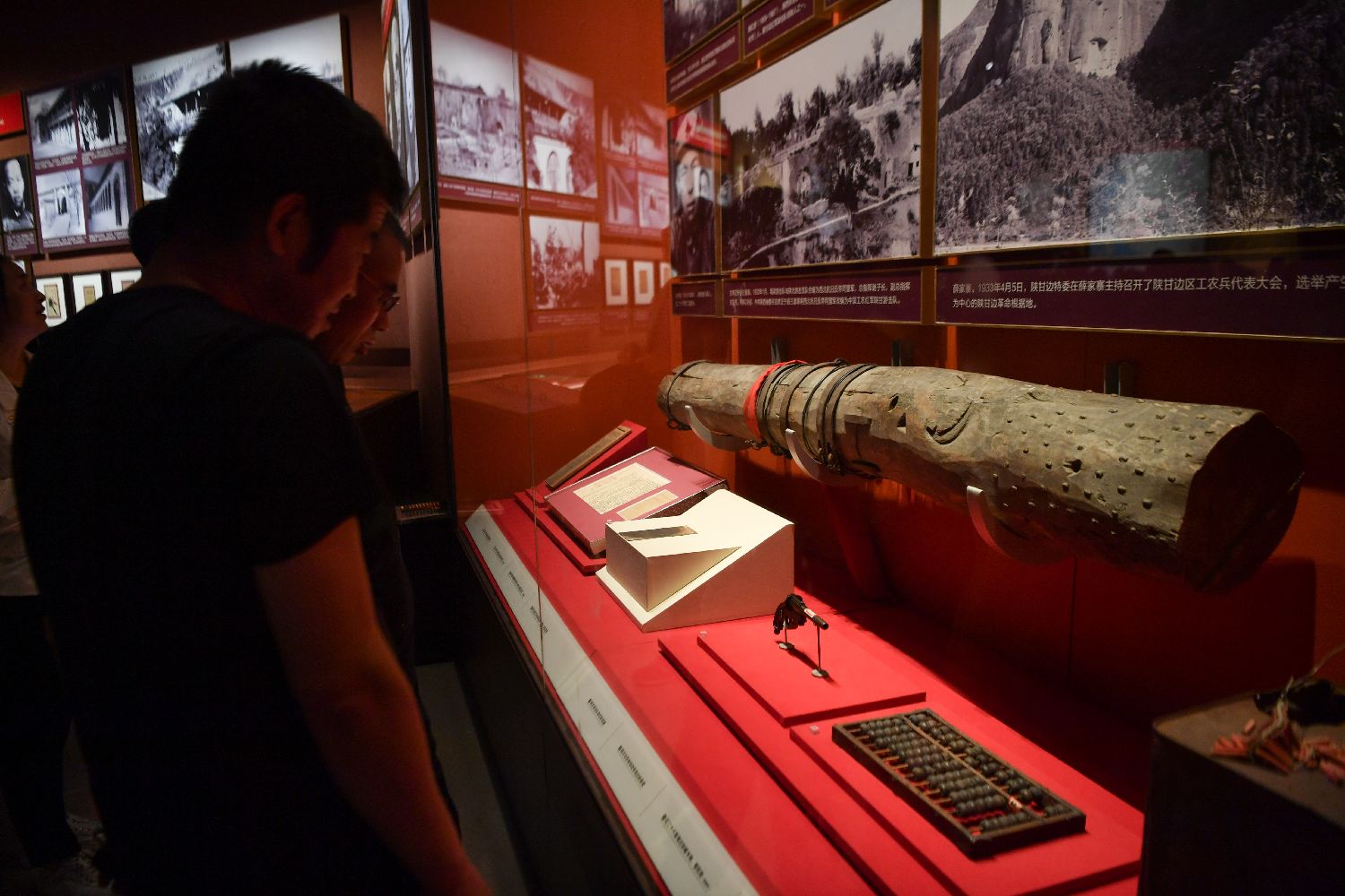 6月30日,观众在延安革命纪念馆观看《伟大历程——中共中央在延安十三年历史陈列》。(图/新华社)