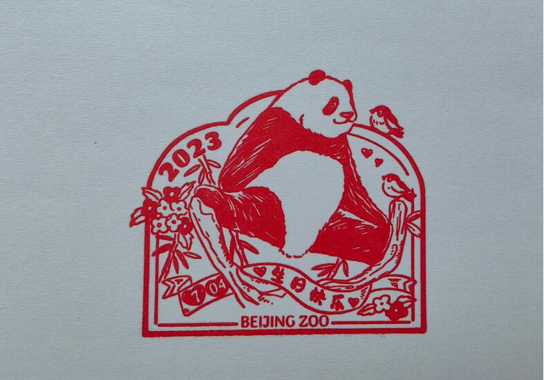 北京动物园推出“萌兰一字马”印章图案。(图/@北京动物园新浪微博)