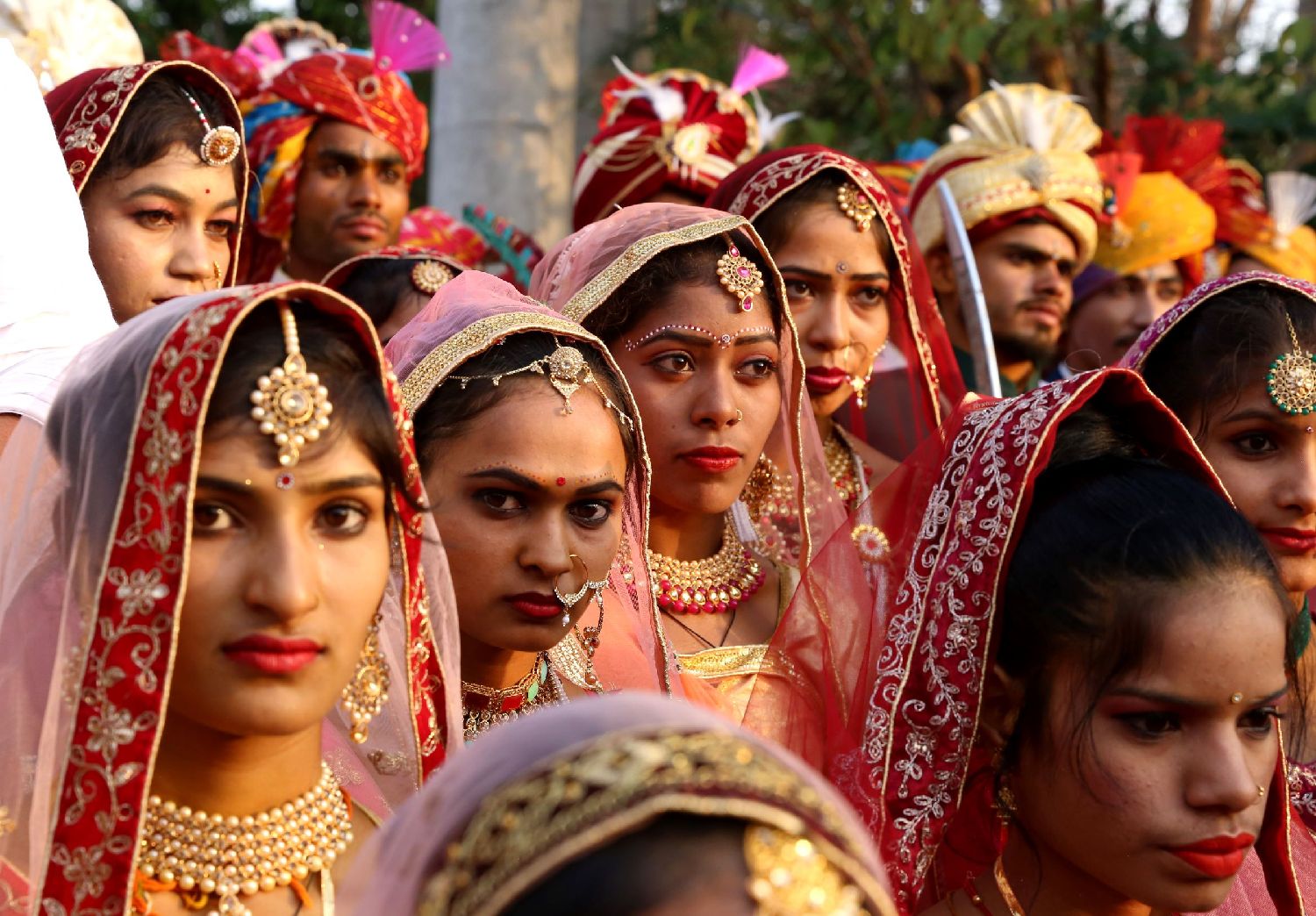 图为4月22日在印度博帕尔的集体婚礼上拍摄的新娘。(图/新华社)
