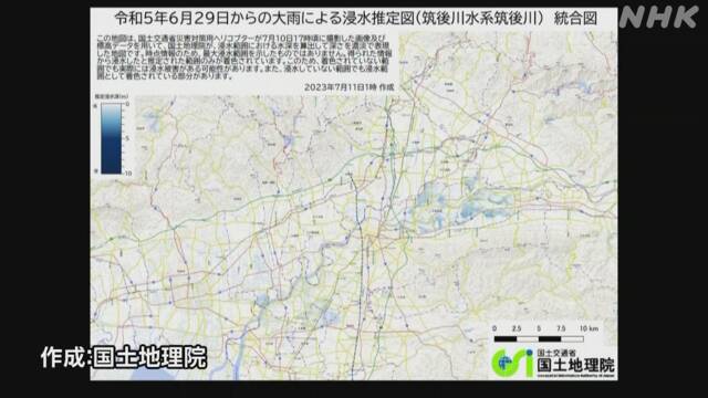 筑后河 中下游大范围洪水侵害 国土地理院分析