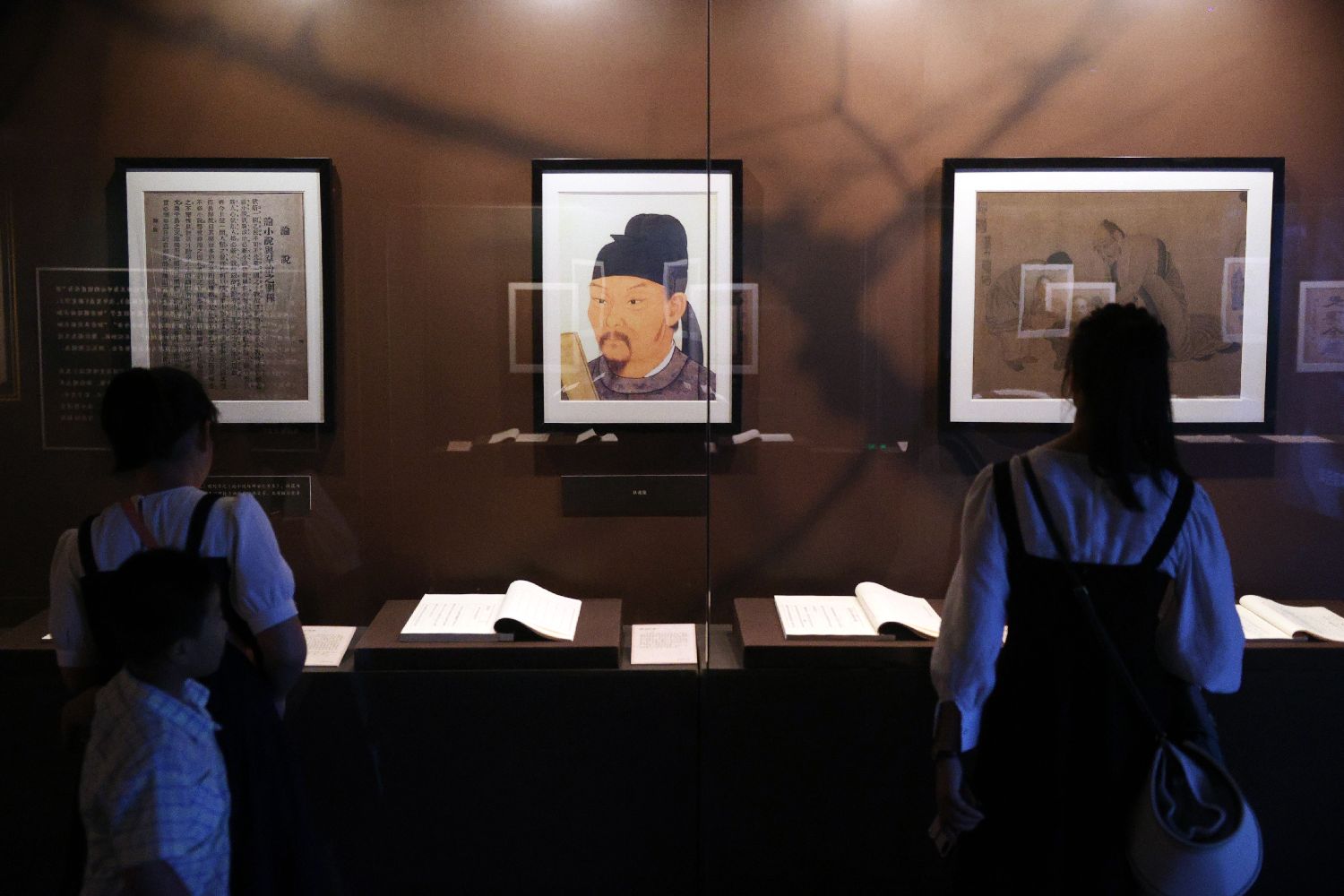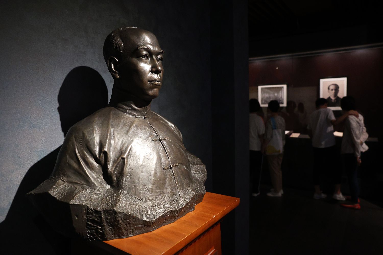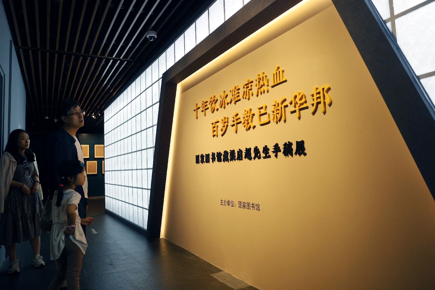 7月14日,梁启超先生的铜像亮相展厅内。据介绍,梁启超先生曾任中国国家图书馆前身京师图书馆、北京图书馆的馆长。去世前,他专门叮嘱儿女,务必将其手稿和所藏书籍捐给国家。1930年2月,梁氏子女将天津饮冰室藏书、碑帖拓片、手稿等“永久寄存”国立北平图书馆(今国家图书馆),“以供众览”。1954年,梁令娴、梁思成及其他梁氏家属向北京图书馆(今国家图书馆)正式捐赠梁启超手稿,包括《饮冰室合集》收录的文稿,以及相当一批集外文稿,具有极高的学术及文献价值。(黎明 摄)