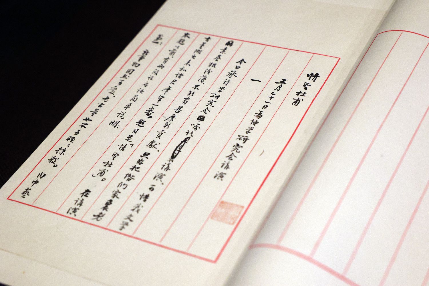 7月14日,现场展出梁启超手稿《情圣杜甫》。(黎明 摄)