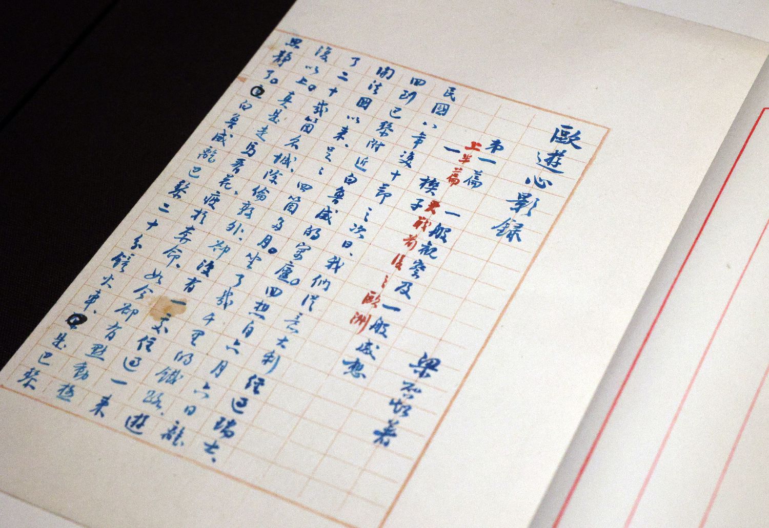 7月14日,现场展出梁启超手稿《欧游心影录》。(黎明 摄)