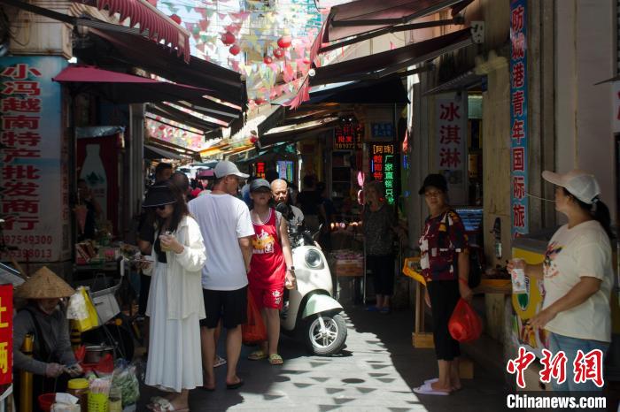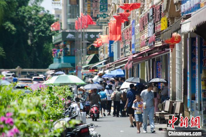 7月15日,位于中越边境的广西东兴口岸附近熙熙攘攘,中越边民扛着大包小包的商品通关过境,充满异国风情的东兴国门景区吸引大量游客。据东兴出入境边防检查站统计,今年上半年,东兴口岸(一桥)出入境旅客达153.2万人次,出入境中国旅游团1.12万个,越南旅游团近4000个,入境的越南旅游团增长迅猛。