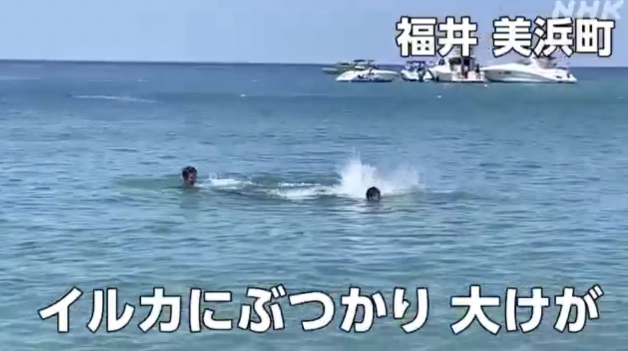 福井美滨町的海水浴场男性游客遭海豚撞击受重伤