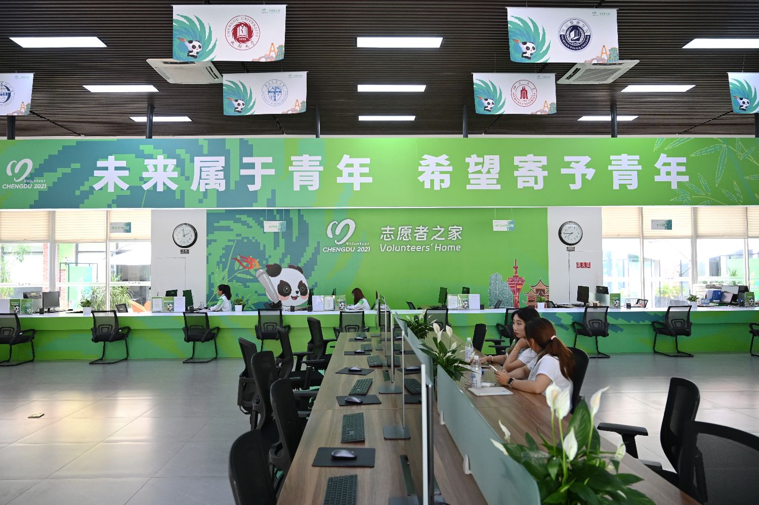 大运村运动员宿舍服务台。(中新网)