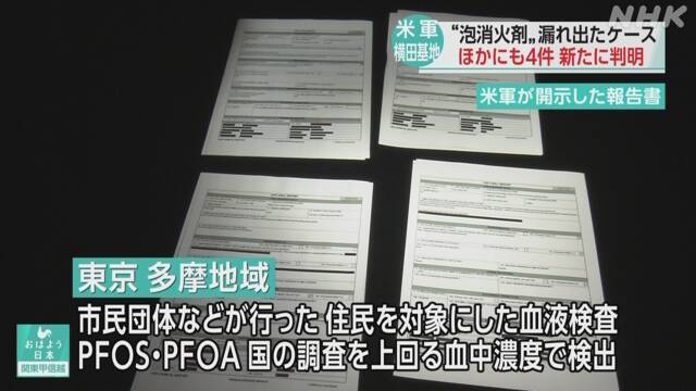 而东京都政府透露,在10多年前曾有3 起含有上述有毒物质的美军基地泡沫灭火剂泄漏事件发生。而在NHK对美国空军基地进行采访调查后又发现4起泡沫灭火剂泄漏问题。