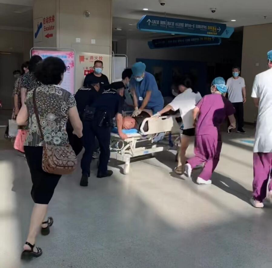 北京时间7月20日早上7点10分左右,医院门诊陆续有患者前来就诊,也有换班的医护人员刚刚来到医院。这时,院区急诊分诊台收到大厅导医台的电话:“有人在大厅晕倒了,还口吐鲜血。”当时正在值班的急诊科护士迟一勋和急诊科护士李琪琪以及急诊科当班医生张骏浩一起拿着急救设备冲到大厅。