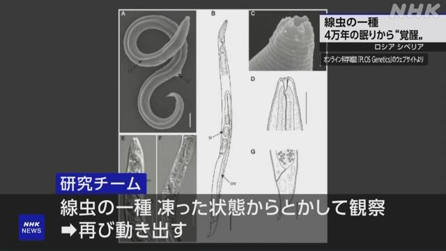 据NHK报道,这项研究由俄罗斯和德国研究团队于27日在美国的科学杂志《Prost Genetics》上发表。研究团队从西伯利亚的永久冻土中发掘出这种线虫,并将其从冻结状态解冻后进行观察,发现它们再次恢复了活动。进一步的调查显示,这种生物在大约4万6000年的时间里一直处于一种被称为“隐眠”的状态。