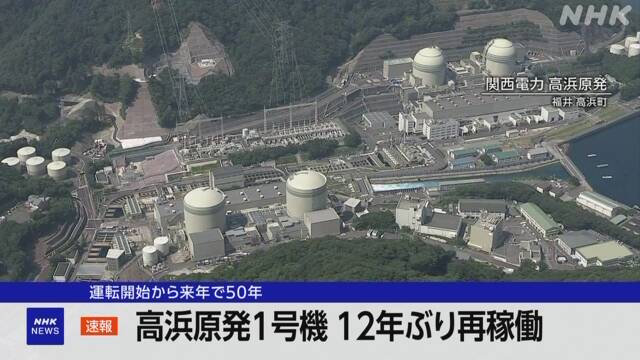 (日本头条讯)据NHK报道,7月28日下午3时,位于福井县的日本电力公司高滨核电站1号机组的第一个反应堆在12年后首次重新启动。