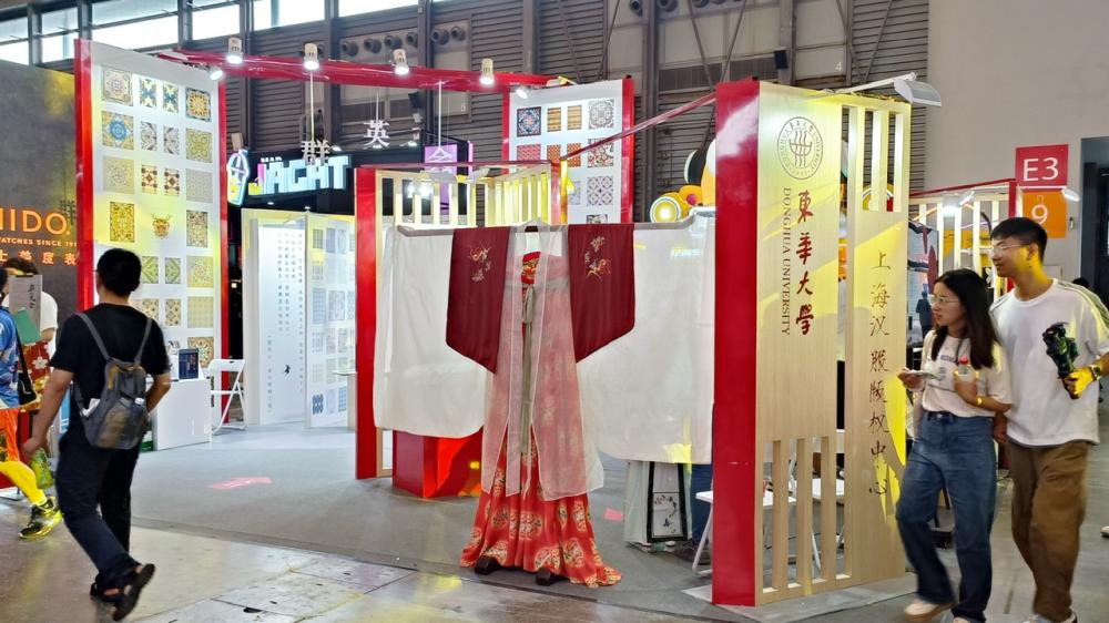 在ChinaJoy,上海汉服版权中心展台吸引众多游戏玩家和汉服爱好者驻足。一组名为“红楼玉阙”的设计作品显得格外特别,文学经典《红楼梦》与汉服饰超越时空,完成了一场美的对话。“从元春的荣耀开端,迎春的软弱无力,到探春和惜春的一声叹息,贾府百年被浓缩在四姐妹的生命中。”设计师将小说中的“四春”作为灵感来源,用石榴花、杏花、菩提花、桃花等的花语展现角色丰富的内心世界。还有一组主题为“宋韵鸣香”的设计作品将宋代古画搬到现代,设计师提取赵佶《瑞鹤图》《五色鹦鹉图》等花鸟画图案进行再创作。
