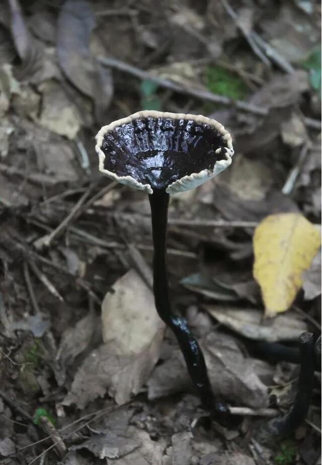 紫芝菌盖和菌柄上均有特有的黑褐色油漆光泽。(图/《杭州日报》)
