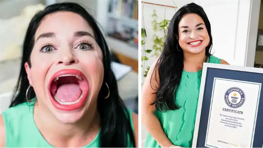 根据吉尼斯世界纪录,来自纽约的萨曼莎·拉姆斯德尔是世界上嘴巴最大的女性。近日,她在社交媒体上宣布,她又打破了一项纪录,她也是世界上嘴巴最宽的女性。