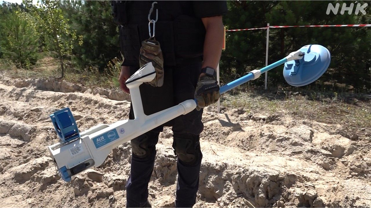 在这样的背景下,从今年四月开始,首都基辅附近的布查市正在进行使用日本提供的地雷探测器"ALIS"进行地雷清除的训练。而这款地雷探测器内置了可以检测地下雷达的功能,并且一旦检测到金属物体,就会在显示器上用红色显示,同时可以了解到物体的形状。