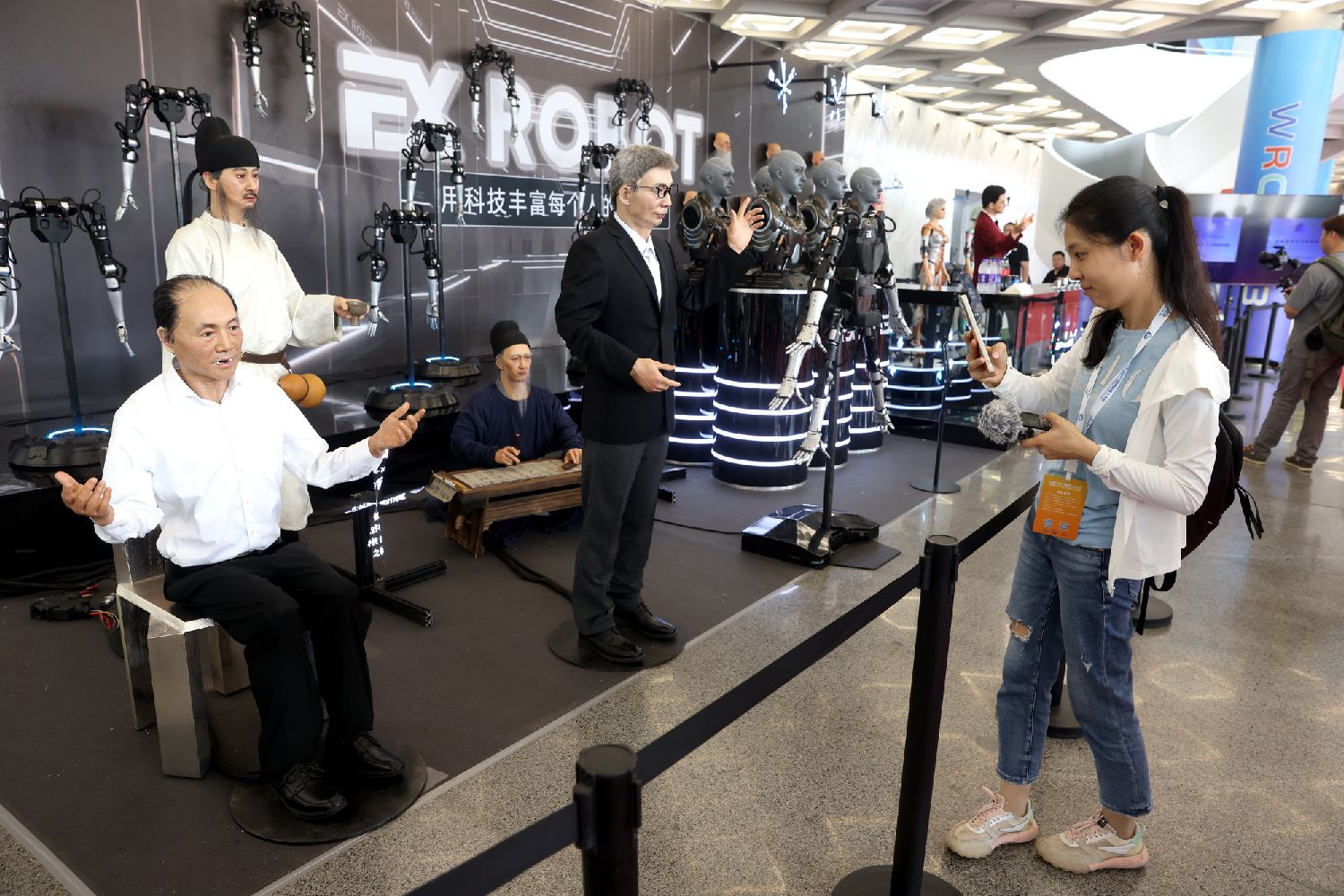 “李白”一袭白衣来到现场,腰间佩戴葫芦,手持酒杯;“杜甫”则端坐在书案前,手持毛笔在纸上书写。EX机器人联合创始人、CEO李博阳表示,本次机器人大会上该公司带来“李白”“杜甫”等仿生机器人,在外观、行为与交互方式上与人类接近。通过采集并模仿人类的面部表情,仿生机器人可呈现出喜怒哀乐等情绪,给人的感觉更加自然。未来仿生机器人可应用于展示讲解、导游导览、企业前台、儿童教育、老人陪护等场景,更好地为人类服务。