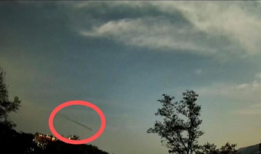 监控视频显示,宁静的夜空中,一不明物体突然“闯”入镜头中,急速向地面坠落,天空中划出了一道十分显眼的飞行轨迹。该物体坠落时,除了虫鸣声外,并无其他声音被监控相机录入。