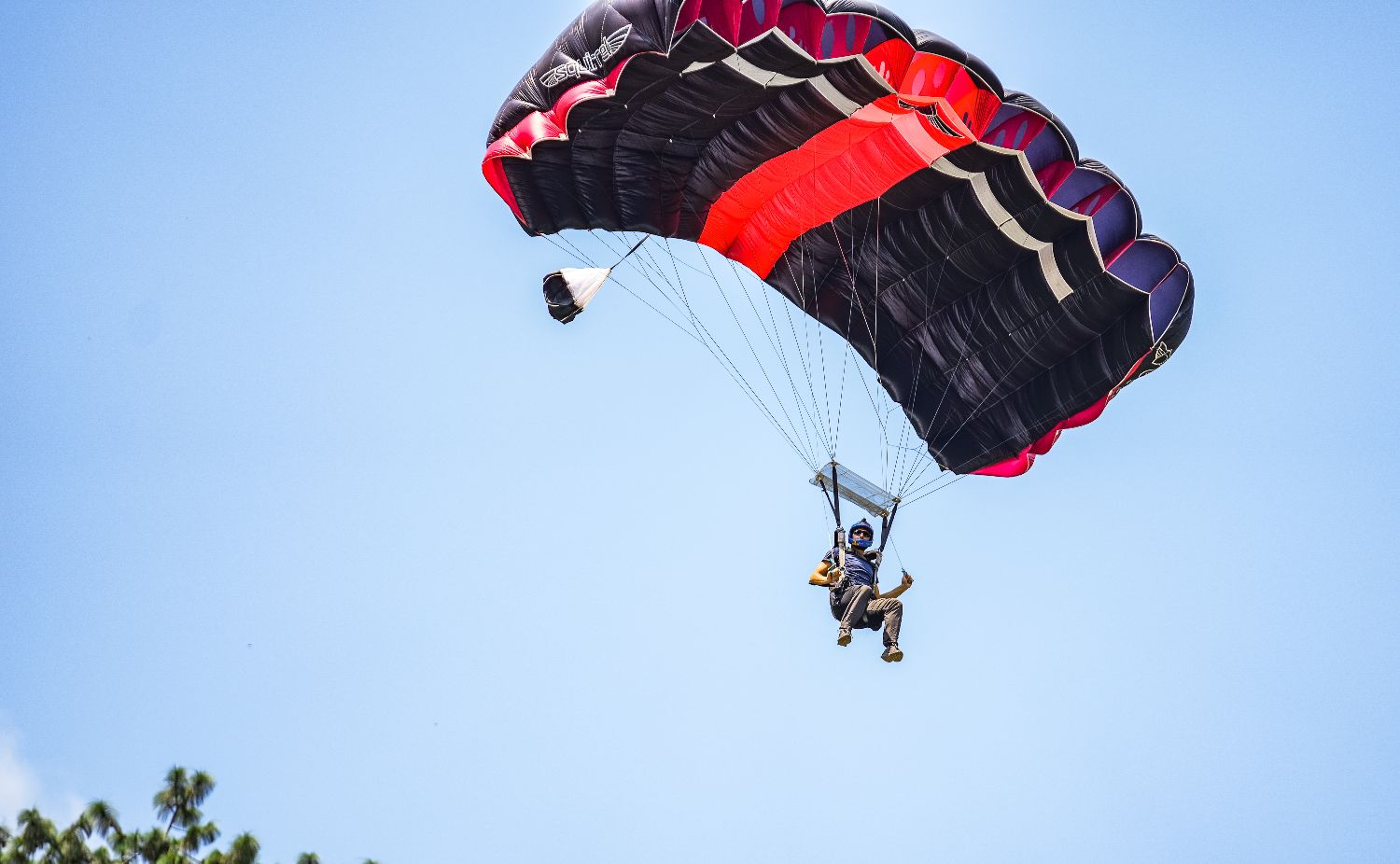 9月6日,动力伞编队进行飞行表演。(新华社)