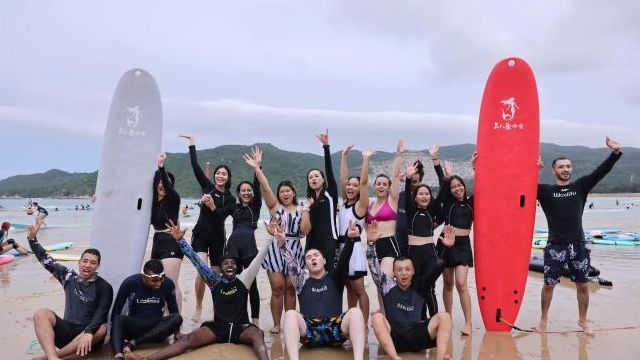 “在三亚后海村体验冲浪对我来说是一次新奇的经历,非常开心。”古巴青年Ariadna Wong的爷爷是中国人,从小就想体验中国文化,如今在上海留学。她表示,三亚的海鲜、椰子、海浪在古巴也常见,但三亚后海村的冲浪文化充满时尚活力,这次冲浪体验给自己留下深刻印象。
