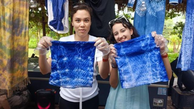 除了欣赏美景,Sabrina和同伴们还在三亚天涯海角游览区体验海南民族特色扎染文化,“第一次体验扎染觉得很有趣,我要把亲手做的扎染布袋带回去,向亲朋好友讲述这次在三亚的所见所闻。”