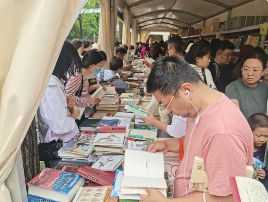 高校新生结队骑车逛书展,老书迷拖着拉杆箱齐上阵