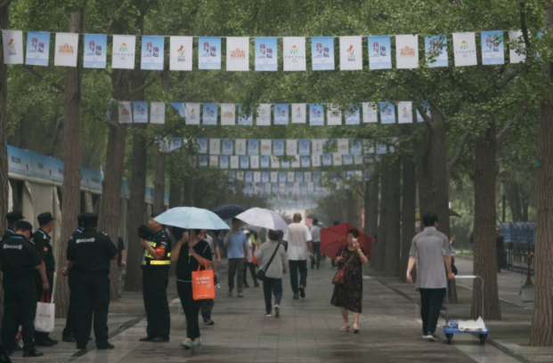 图为9月8日,“我与地坛”北京书市在地坛公园正式拉开序幕,许多市民一早冒雨来“淘书”。(图/北京《新京报》)