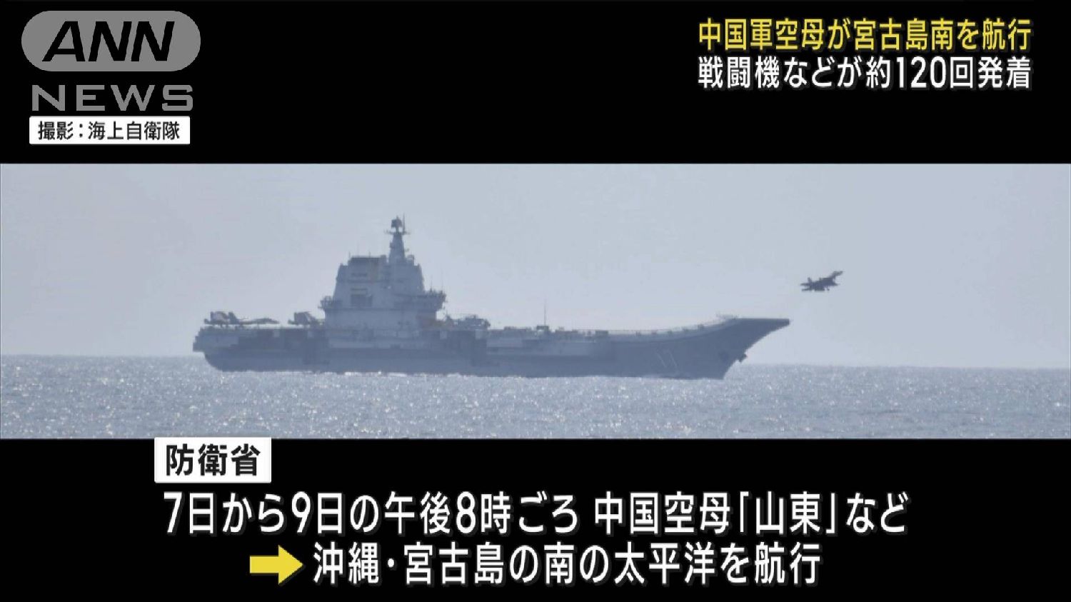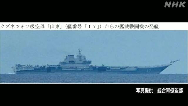 日本防卫省宣布称确认中国海军山东号航空母舰训练画面
