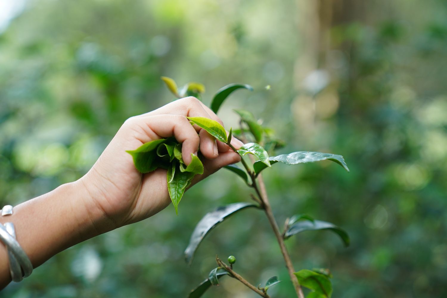 景迈大寨的傣族姑娘仙罗在茶园采茶。(中新社)