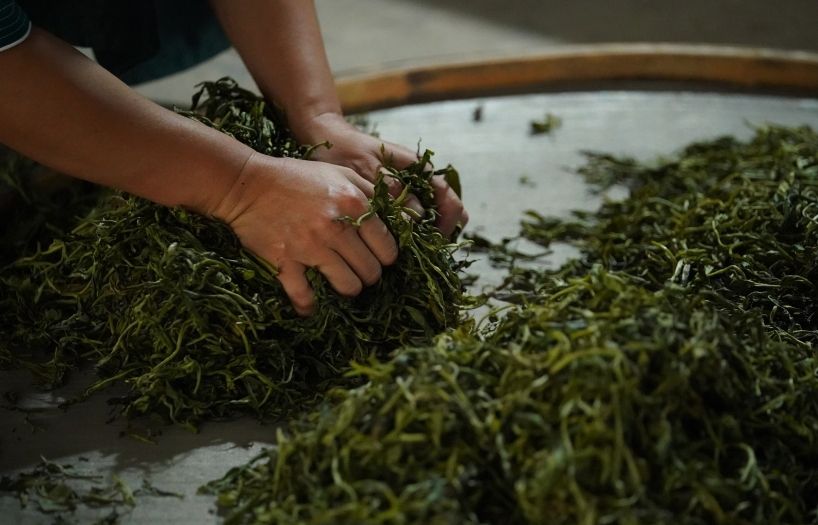 景迈山的一名茶人用传统工艺制茶。(中新社)