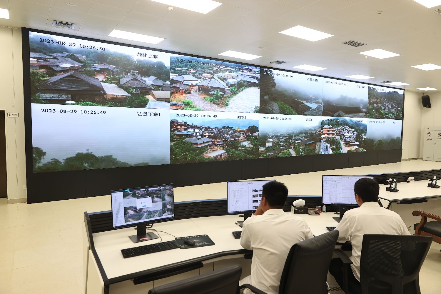 工作人员在景迈山古茶林监测中心工作,用高科技手段监测茶园状况。(中新社)