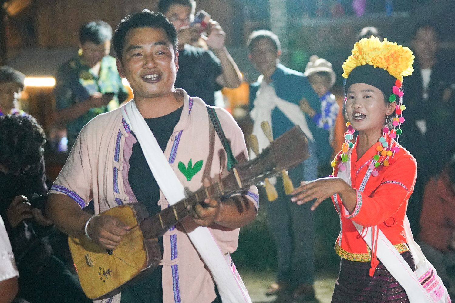 民众在景迈山翁基古寨载歌载舞,庆祝联合国教科文组织第45届世界遗产大会通过决议,将中国“普洱景迈山古茶林文化景观”列入《世界遗产名录》。(中新社)
