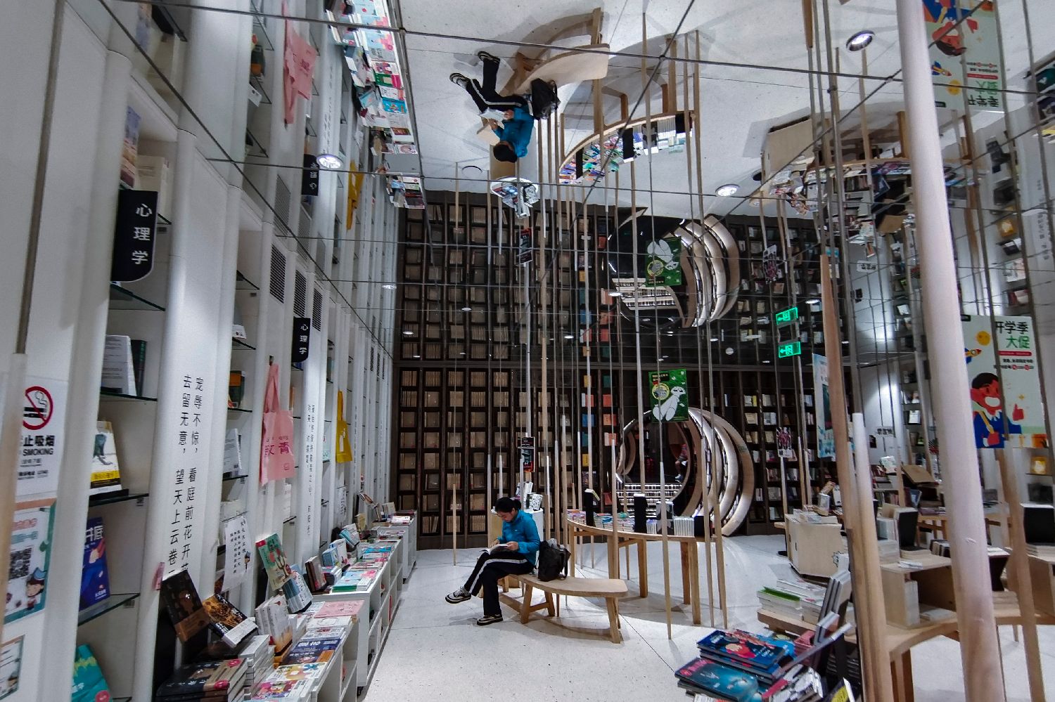 9月15日,读者在极具装饰特色的钟书阁书店内阅读。(王亚霓 摄)