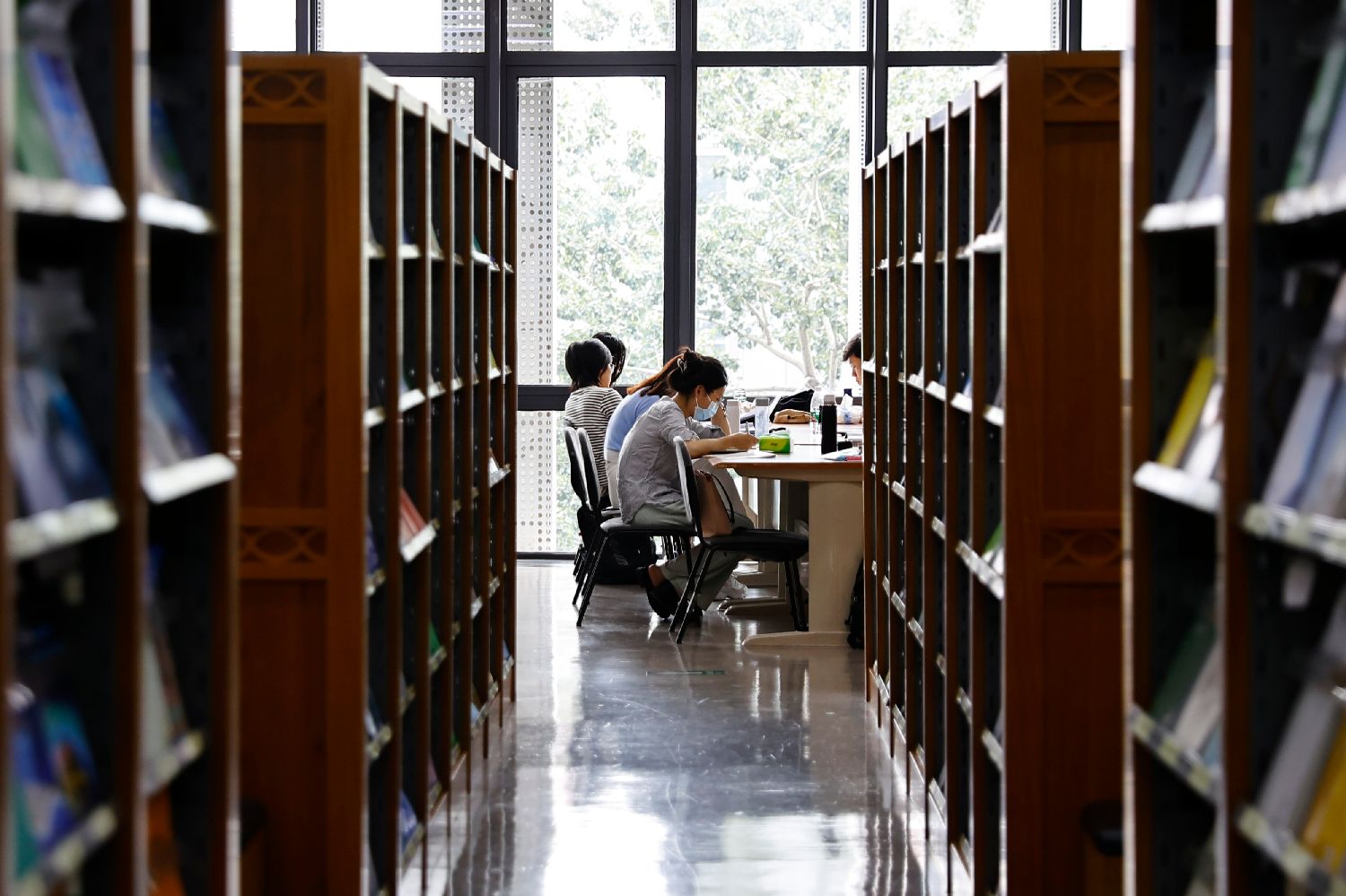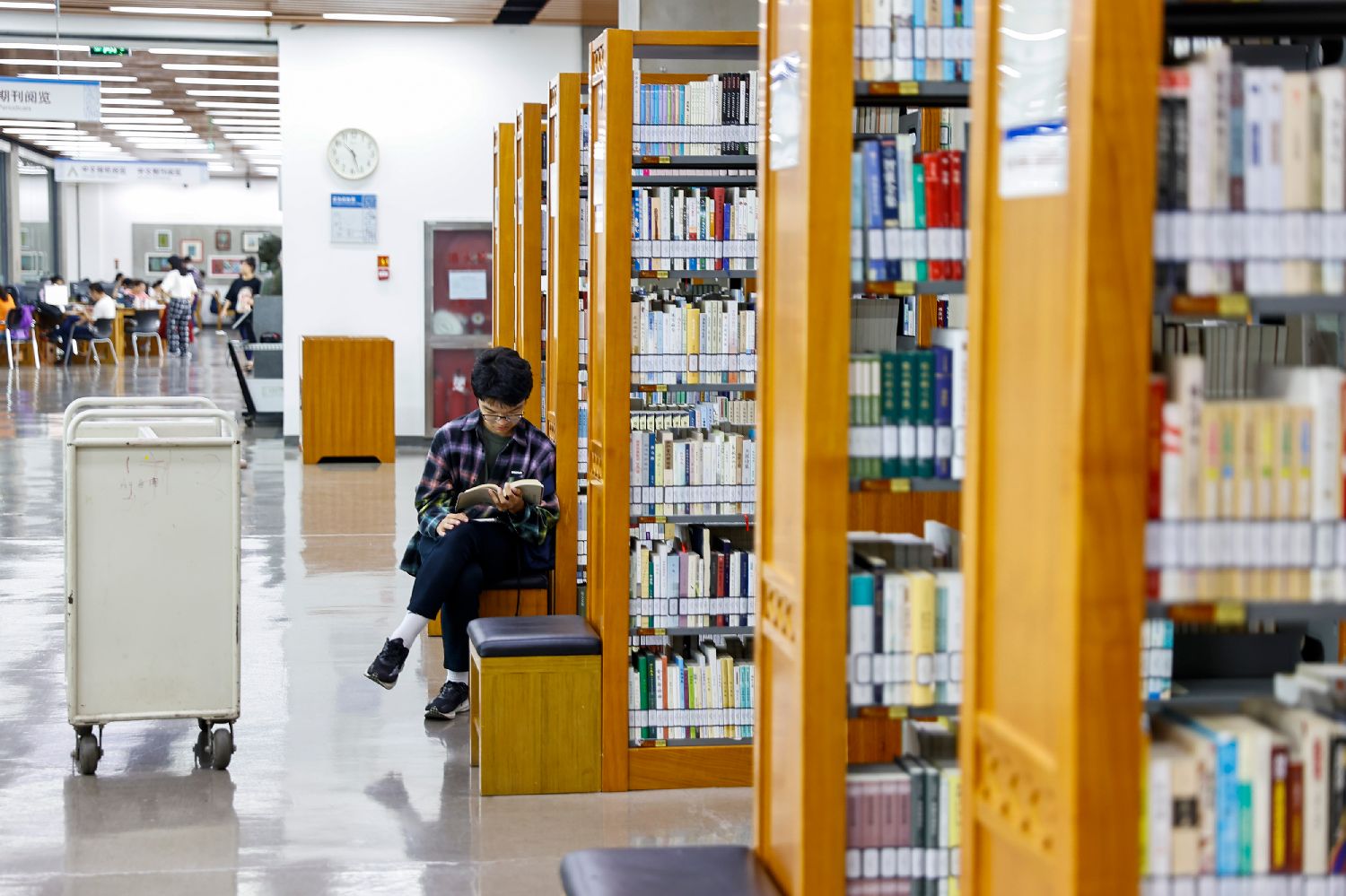 9月15日,在北京首都图书馆阅览室,读者正在阅读图书。(王亚霓 摄)