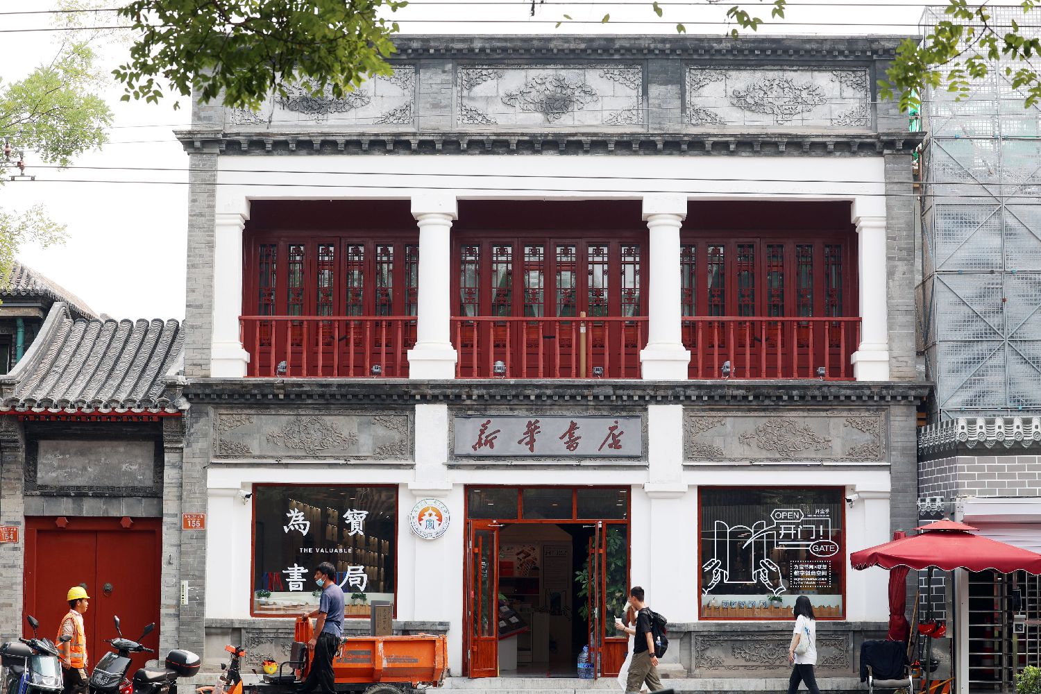 位于鼓楼大街上的新华书店·为宝书局是一座中西合璧的二层小楼。据介绍,为宝书局历史可以追溯到1905年,店名取自《大学》“惟善以为宝”。新中国成立后改成新华书店地安门分店,曾有很多名人光顾于此。2023年4月2日,书店重装开业并恢复为宝书局历史原名。(黎明 摄)